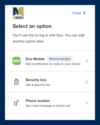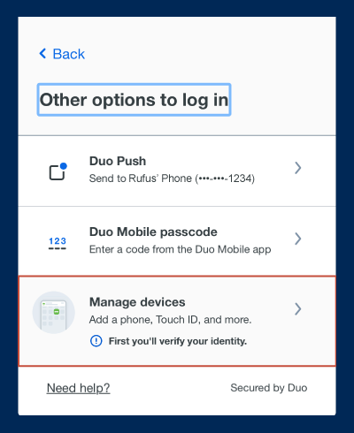 Note: You can change your 2FA prompt whenever you authenticate by clicking Other Options.
