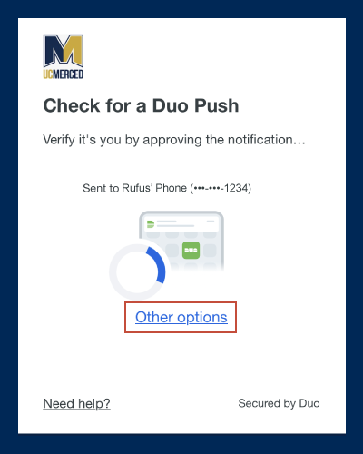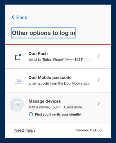 On the list of authentication options, select Duo Push to you Duo Mobile device.