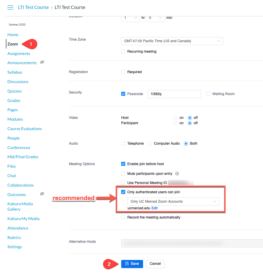 Default Zoom Security Settings at UC Merced